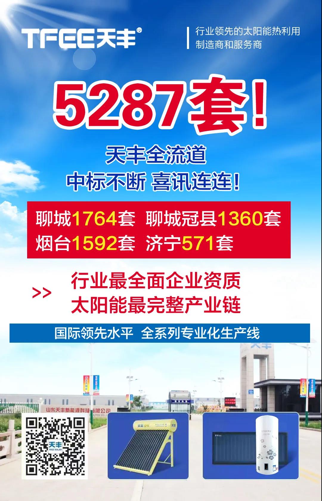 依托出色的差異化產品優勢,天豐全流道平板集熱器受到客戶的一致認可,在光熱市場也得到諸多用戶的青睞。在剛剛過去的2020年末,約一個月的時間里,天豐中標喜報頻傳,四處大型項目成交量達5287套,在同行業脫穎而出,優秀業績的背后,是以全流道過硬的產品品質作為支撐,實現銷量與口碑雙豐收。