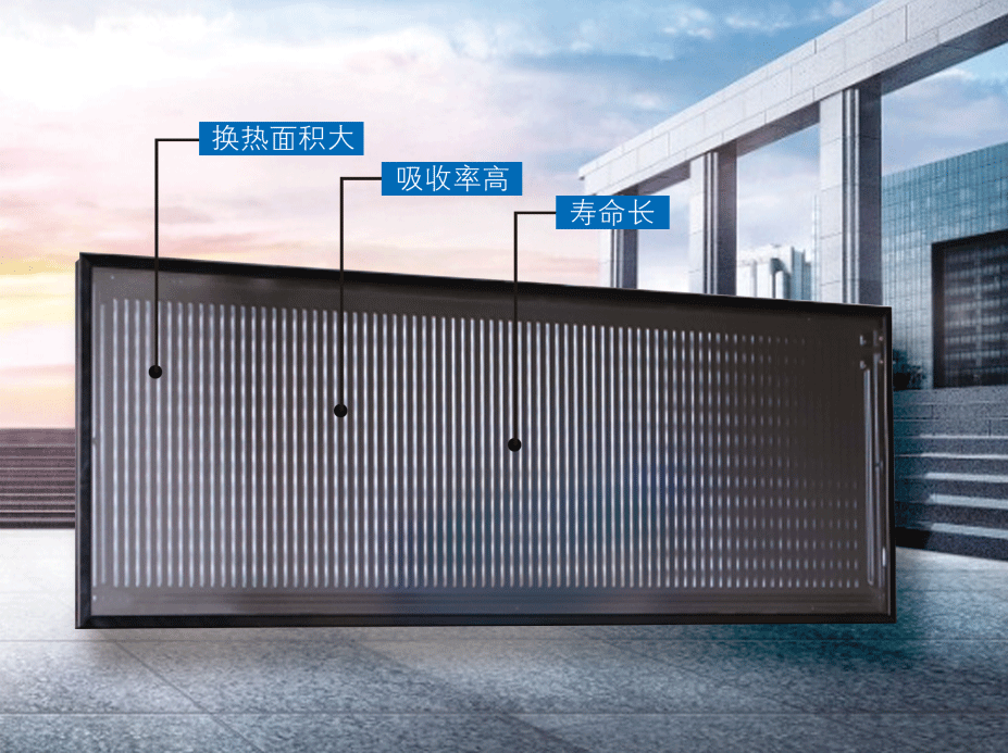 天豐全流道平板集熱器,采用整板流道式結構,整板集熱整板換熱,集熱與換熱進行熱交換,換熱面積高達3.5㎡,是目前行業內太陽能集熱換熱比很大,熱傳導性能很高的平板太陽能集熱器,流道焊接與支流道連接更牢固,焊接觸面更多,更易密封。在國內外具有一流水平,解決集熱器腔體密閉結構、正負壓保護、整機結構強化與低成本問題,使產品性價比更高。