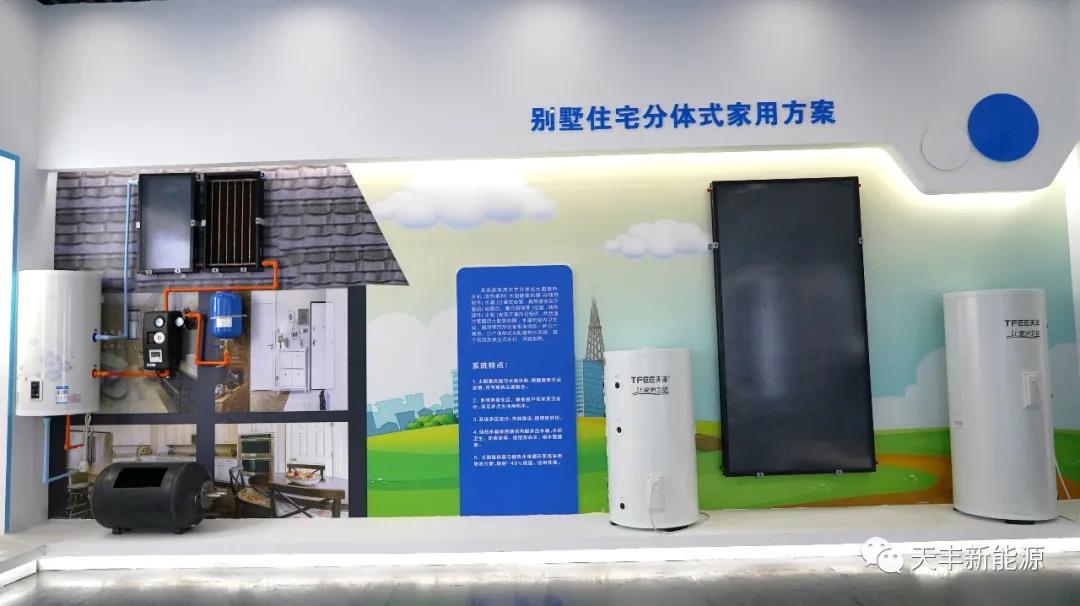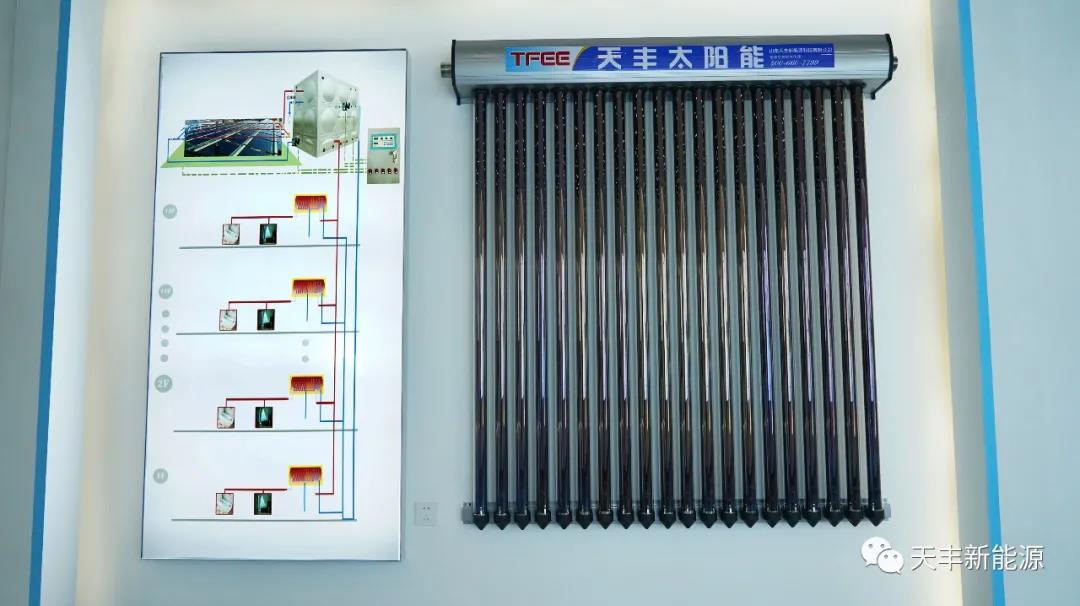 從“煤改清潔能源”到“碳達(dá)峰碳中和”,天豐也一直在為打贏藍(lán)天保衛(wèi)戰(zhàn)助力,除了在戶式、樓盤配套、大型集熱工程等市場(chǎng)發(fā)力之外,也在不斷探究光熱應(yīng)用的新領(lǐng)域。在2019年,推出天豐太陽(yáng)能采暖專用機(jī),末端可搭配空氣源熱泵、電熱鍋爐、生物質(zhì)顆粒爐作為輔助熱源,以達(dá)到采暖的目的,當(dāng)陽(yáng)光不足時(shí)自動(dòng)啟動(dòng)輔助能源部分,保證24小時(shí)提供恒溫供暖。