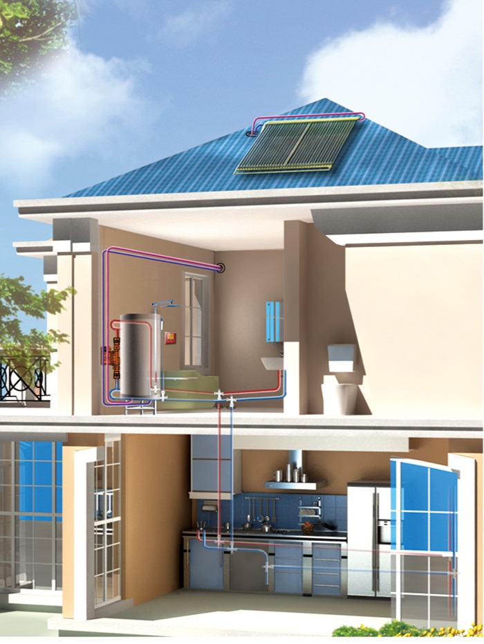 太陽集熱器與水箱分離,根據需要靈活安裝,可與建筑完美融合;